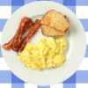 Pan de molde con jamón y queso, acompañado de papas fritas.